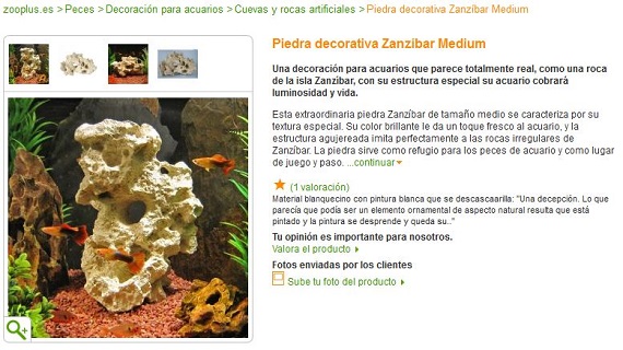 Tanto en Kiwoko como en Zooplus podemos comprar diversos artículos de decoración de acuarios. Todos ellos enfocados a lograr acuarios muy vistosos que queden geniales en los espacios elegidos para ellos.